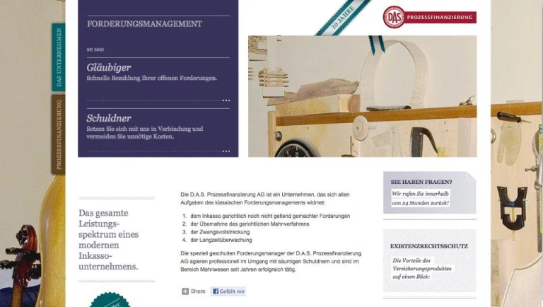 Neben der seit 2006 betriebenen Manufaktur-Lösung für den Existenz-Rechtsschutz kam 2009 das Mengeninkasso als Dienstleistung hinzu. Die D.A.S. Prozessfinanzierung konzentrierte sich auf das Forderungsmanagement für Unternehmen aus der Versicherungswirtschaft. Im Beitragsinkasso konnten durch die industrielle Bearbeitung auch große Forderungsmengen bei gleichbleibend hoher Qualität gewährleistet werden.